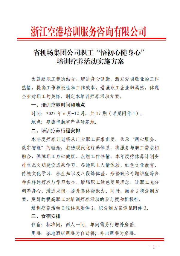 省機(jī)場(chǎng)集團(tuán)公司職工“悟初心健身心” 培訓(xùn)療養(yǎng)活動(dòng)實(shí)施方案